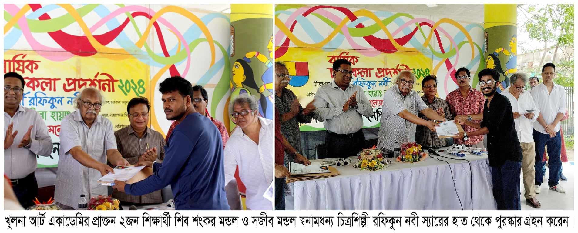 শিল্পী শিব শংকর মন্ডল মাধ্যম শ্রেষ্ঠ - পেন্সিল স্কেচ ( ক্লোজআপ স্টাডি)এবং শিল্পী সজীব মন্ডল শ্রেণী শ্রেষ্ঠ - পেন্সিল স্কেচ ( ফিগার অনুশীলন) তারা দুজনেই খুলনা আর্ট একাডেমির চারুকলা ভর্তি কোচিং ২০২০ সালের ১০ম ব্যাচের প্রাক্তন শিক্ষার্থী। তাদের এই প্রাপ্তিতে অভিনন্দন জানায় খুলনা আর্ট একাডেমি। এবং মিলন বিশ্বাস তাদের এই প্রাপ্তিতে অত্যন্ত আনন্দিত । তিনি বলেন তারা ভবিষ্যতে দেশের স্বনামধন্য চিত্রশিল্পী হিসেবে পরিচিতি লাভ করলে আমার শিল্প সাধনা সফল হবে।উক্ত প্রদর্শনীতে যারা সম্মানিত হয়েছেন তাদের “সবার উজ্জ্বল ভবিষ্যৎ ও স্বপ্ন পূরনের জন্য শুভকামনা করেন খুলনা আর্ট একাডেমি।এই ধারাবাহিকতায় সামনে এগিয়ে যাক। খুলনা আর্ট একাডেমিতে শিক্ষার্থী হয়ে এসে একাডেমির সাথে শিব শঙ্কর ও সজীবের যে বন্ধন সৃষ্টি হয়েছে তাই প্রতিষ্ঠানের পক্ষ থেকে আমি তার শিক্ষক হিসেবে সার্বিক মঙ্গল কামনা করছি। তাদের মনের স্বপ্নগুলো এমন করে যেন পূর্ণ হয়। আজকের এই প্রাপ্তি তাদের নতুন পথের সন্ধান দিবে। ইতোমধ্যে বেশ কয়েকটি সম্মাননা স্মারক গ্রহণ করেছেন। আরও বড় কিছু ছিনিয়ে আনবে প্রতিযোগী হয়ে। এমন আশীর্বাদ করি।